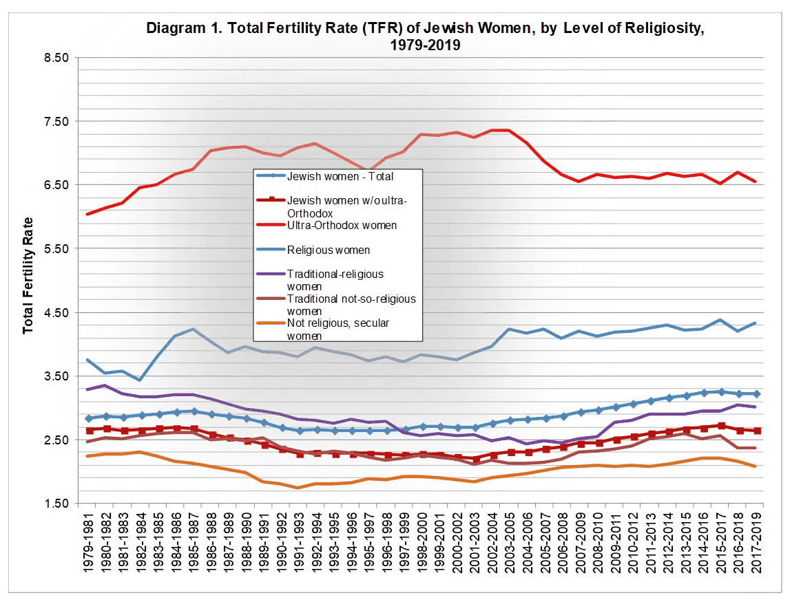 Mais il y a en Israël une différence majeure avec nos sociétés que relève Ryan McEntuch sur Pirate Wires : la guerre religieuse. Les franges les plus “déterminées” de cette théocratie sont habitées d’un projet biblique qui n’a aucun équivalent dans le monde. Et si c’était précisément cet aspect là, cette ferveur religieuse belliciste, qui expliquait la natalité extraordinaire de ce petit pays de 9 millions d’habitants ? D’après les recherches à ce sujet1, on est en droit de le penser :