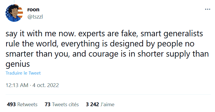 Et on finit sur ce magnifique tweet2 du même auteur, de l’optimisme de ceux qui se sentent l’envie et le devoir de faire bouger les choses :