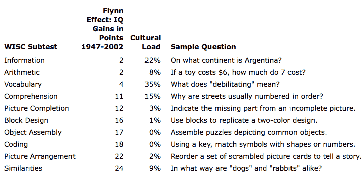 - « The Flynn Effect: IQ Testing Across Space and Time », Steve Sailer, The Unz Review : https://www.unz.com/isteve/the-flynn-effect-across-time-and-space/